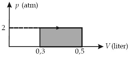 Diketahui: p = 2 atm, V1 = 0,3 L, dan V2 = 0,5 L.